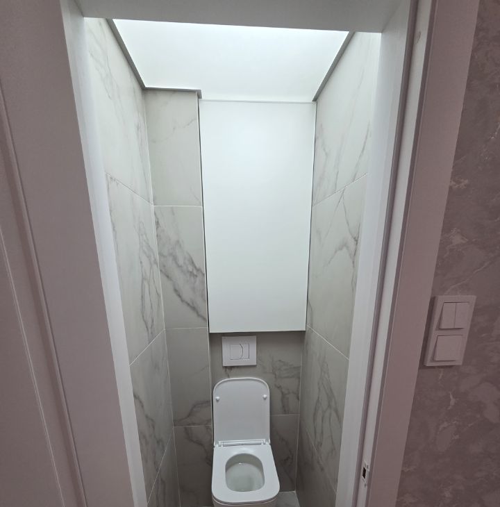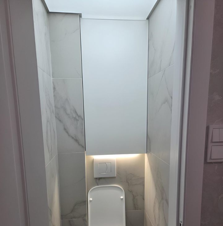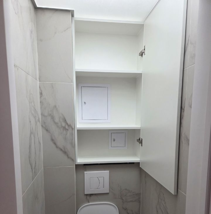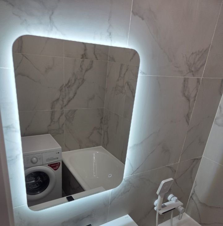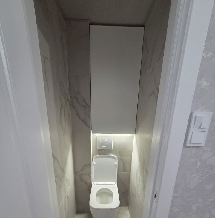 Раздельный санузел. Туалет с сюрпризом: стильная подсветка и аккуратный шкафчик для хранения. Ванная комната: вся сантехника новая, раковина с тумбой (парящая, удобно мыть пол), установлена стиральная машина.