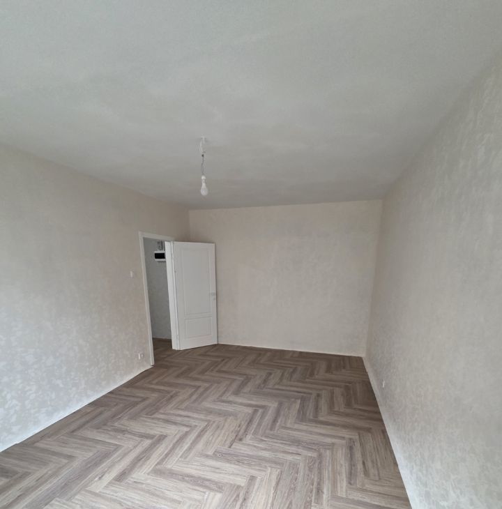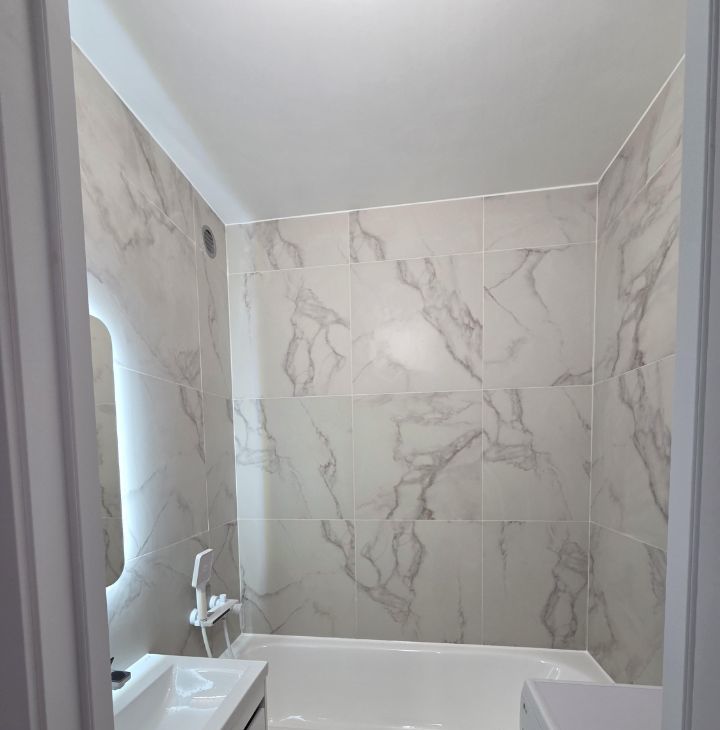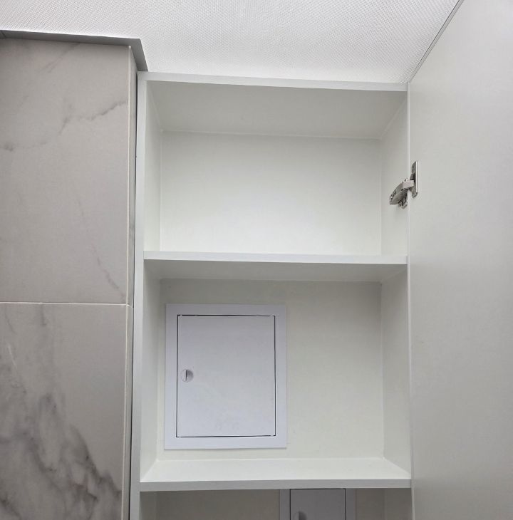 Стены выровнены, потолок окрашен, на полу — практичный кварцвинил (Влагостойкий, теплый, красивый).