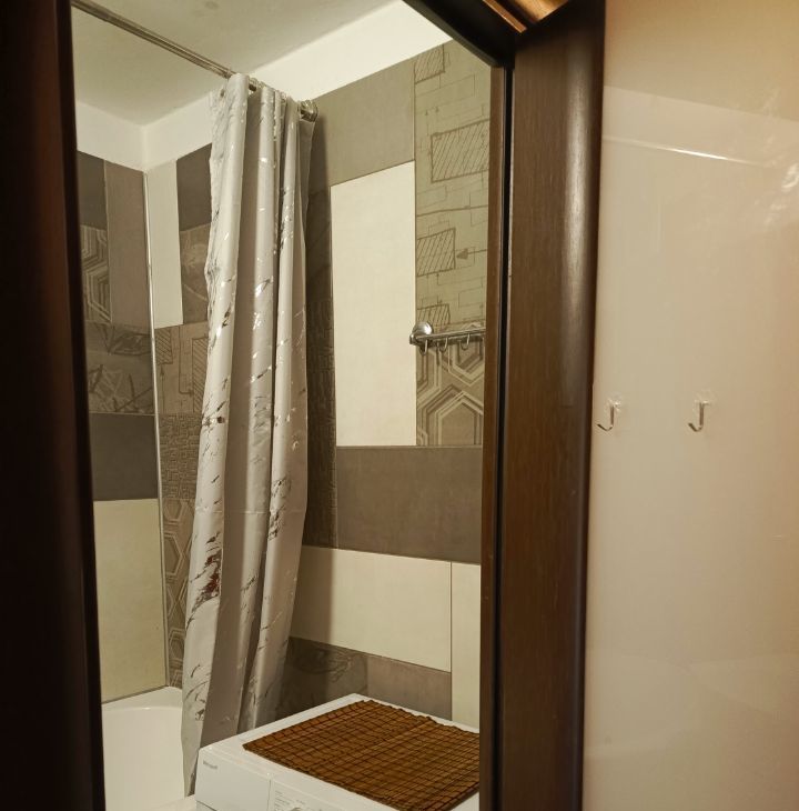 Большая прихожая с вместительным встроенным гардеробом с вешалками и палочками. Санузел раздельный. Ванна оборудована гидромассажем и двойной душевой гарнитурой. Установлена стиральная машина. Есть пылесос, уборочный инвентарь.