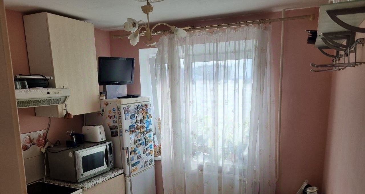 Кухня оснащена плитой, холодильником, микроволновкой.