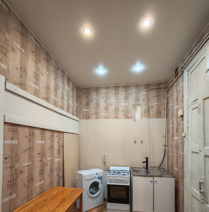 Светлая, теплая квартира с просторной комнатой и кухней. Мебель и бытовая техника в хорошем состоянии.
