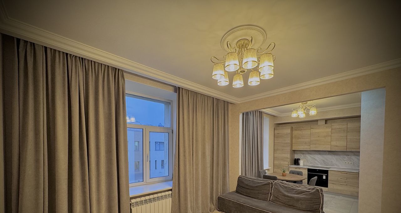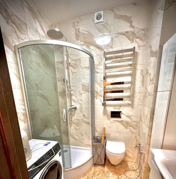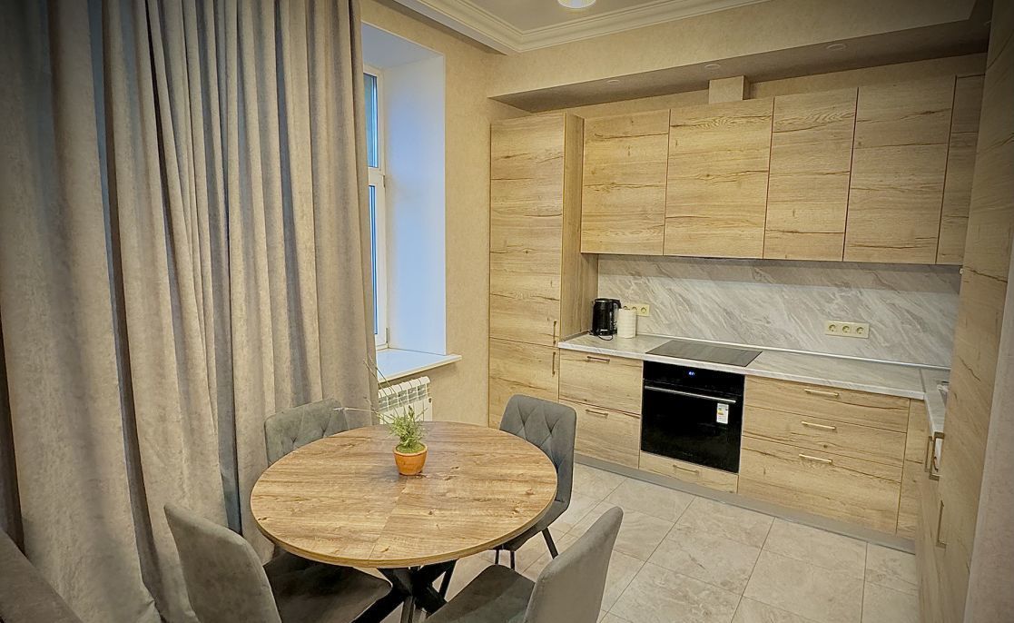 Квартира оформлена с дизайнерским ремонтом и полностью меблирована. В наличии вся необходимая техника: холодильник, посудомоечная машина, телевизор и стиральная машина. На кухне и в комнате продумана эргономичная обстановка, которая позволит вам чувствовать себя комфортно. В ванной комнате установлена душевая кабина.