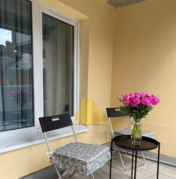 В квартире предусмотрена терраса с уютным местом для отдыха. На ней можно насладиться чашечкой кофе, сидя за столиком.