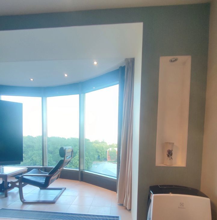 Установлена система кондиционирования (аппарат) и подогрева полов (в ванной и в зоне панорамных окон).