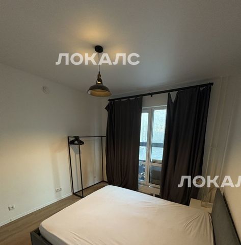 В квартире отдельная спальня с балконом (все лишнее вывезем), кровать двуспальная с наматрасником, слева прикроватная тумбочка, справа подвесная тумба, напротив вешалка для вещей.