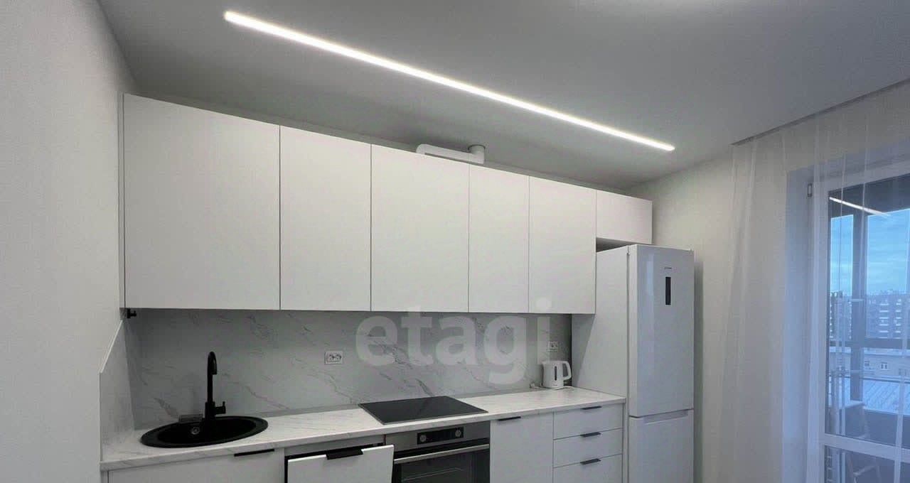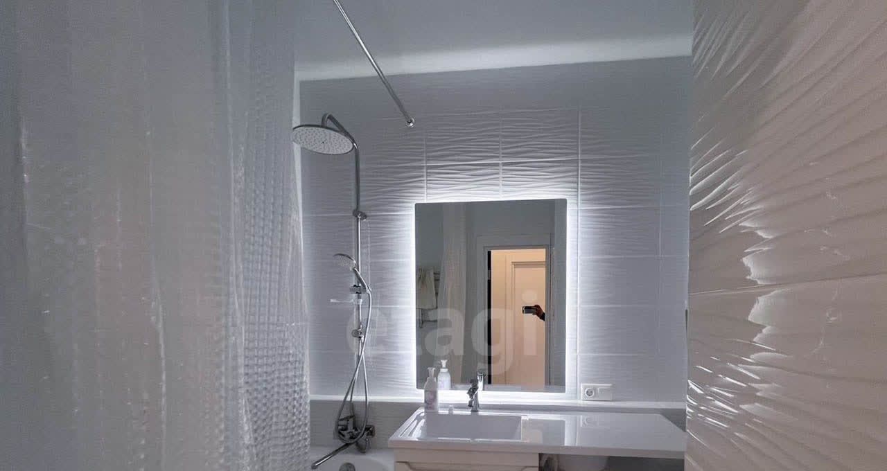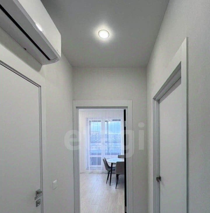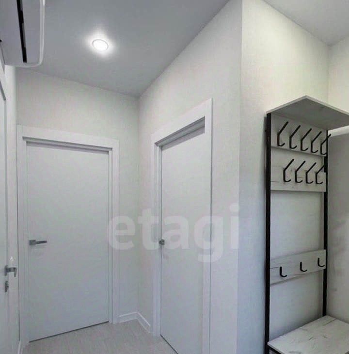 Планировка квартиры включает кухню, просторную комнату и совмещенную ванную. Есть все необходимое для проживания, включая посудомоечную машину и посуду. В квартире установлена система кондиционирования, а также теплый пол в ванной, прихожей и рабочей зоне кухни.