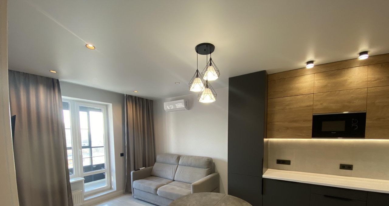 Планировка: Современный формат евро-двушка. Просторная кухня-гостиная (19 м²) для отдыха и приема гостей + уютная спальня с продуманным хранением.