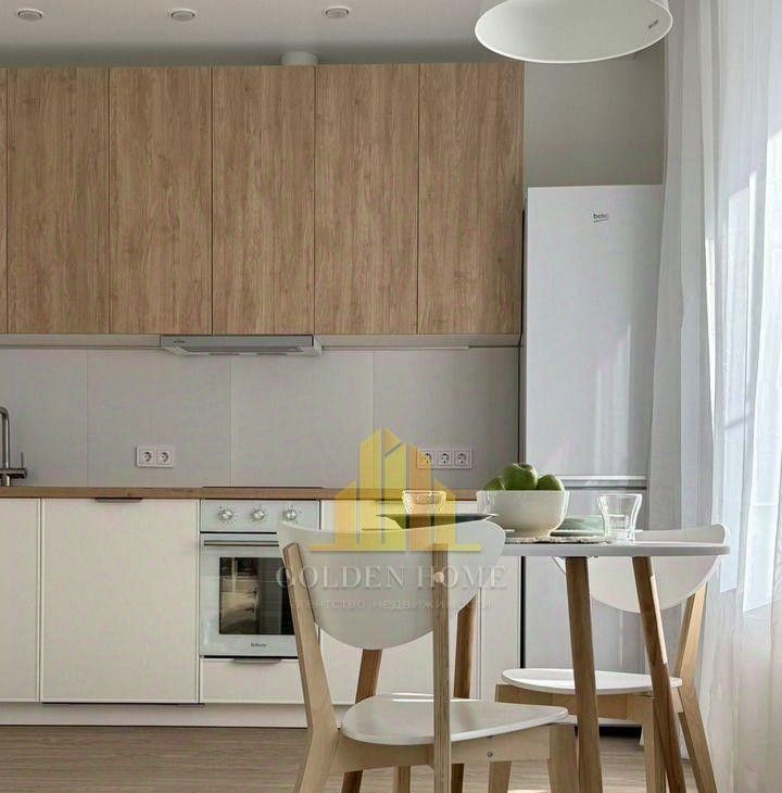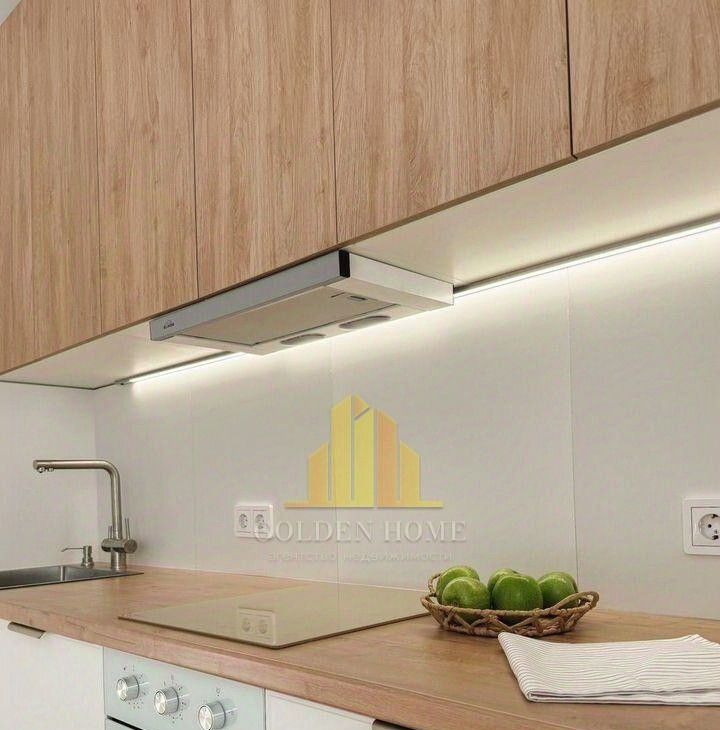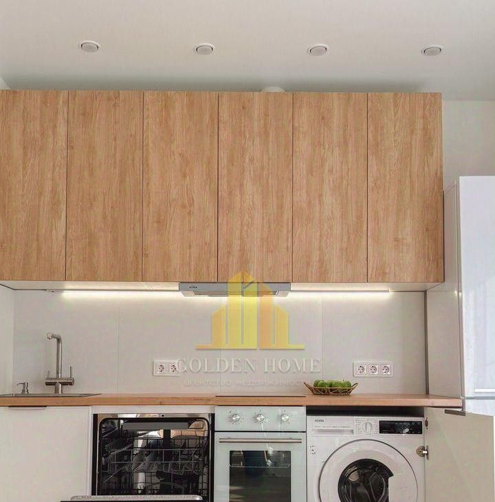 - Кухня полностью оборудована: индукционная плита, духовой шкаф с таймером, посудомоечная и стиральная машины, холодильник 2 м, микроволновка, фильтр для воды, большая зона хранения (240 см).