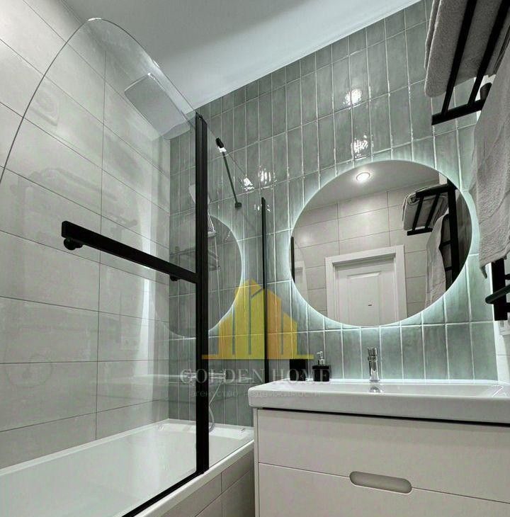 - Ванная комната: комфортная ванна, тропический душ с термостатом, широкая раковина 90 см, качественная сантехника.
