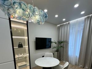 В вашем распоряжении: холодильник, посудомоечная и стиральная машины, микроволновая печь, чайник, плита, духовой шкаф, телевизор со встроенной системой Алиса, фен и многое другое.