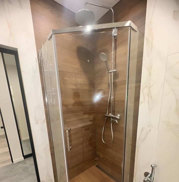Тропический душ с термостатом, есть гигиенический душ.