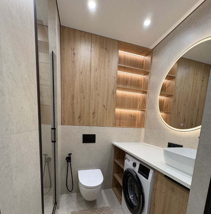- Продуманное освещение по всей квартире, включая светодиодные ленты в ванной.