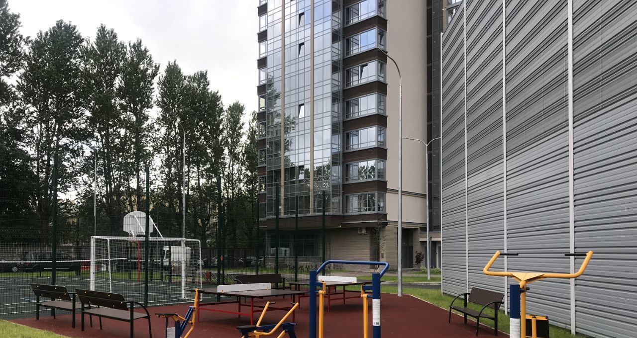 Дом огорожен, на территории дома спортивная и детская площадки, паркинг (возможно, арендовать), гостевая парковка.