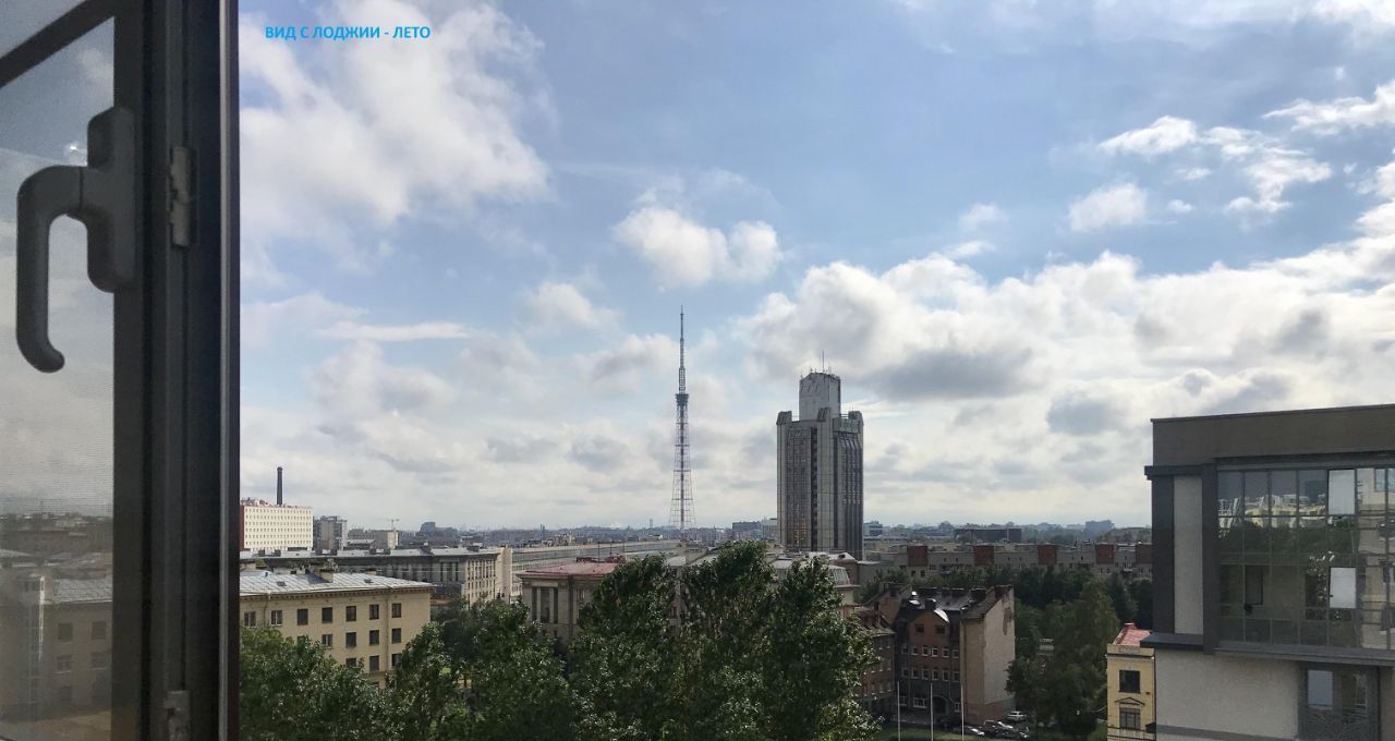 ЖК бизнес-класса Георг Ландрин, в доме 2020 года постройки на 10 этаже 1 комнатная квартира общей площадью 46,8 кв.м (площадь без учета балкона), комната 18 кв.м. с выходом на застекленный балкон, кухня 15,5 кв.м (панорамное остекление), СУ-раздельный, ванная 3,2 кв.м., прихожая 5,8 кв.м с гардеробной 2,8 кв.м., квартира односторонняя (окна выходят в благоустроенный и тихий двор, из окон видны телебашня, башня Лахта-центр и городские салюты).