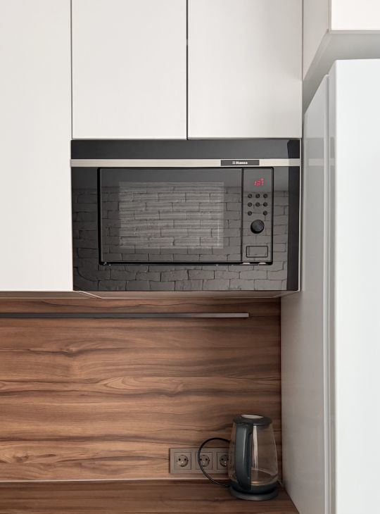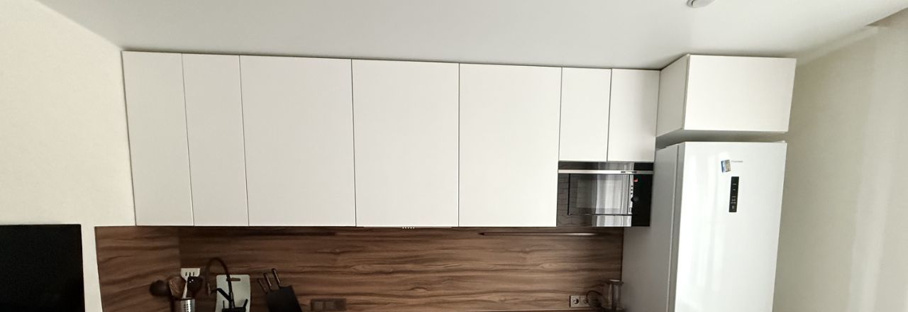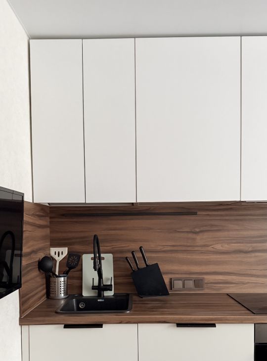 • Просторная кухня (10,9 м²): Функциональный кухонный гарнитур выполнен на заказ (белые фасады до потолка!) и оснащен встроенной техникой (индукционная варочная панель, духовой шкаф, холодильник). На кухне есть телевизор. Продуманное расположение позволяет комфортно разместить обеденную зону и готовить с удовольствием.