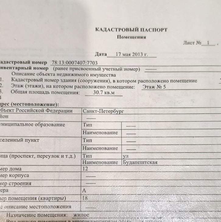 1-к кв. Санкт-Петербург Будапештская ул., 12Б (30.7 м²)