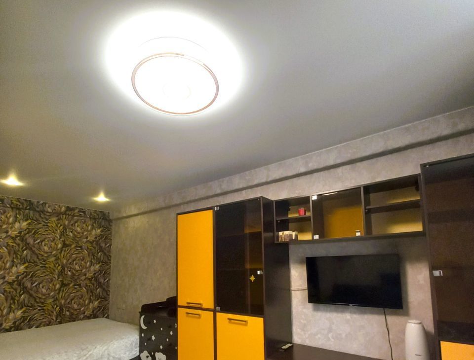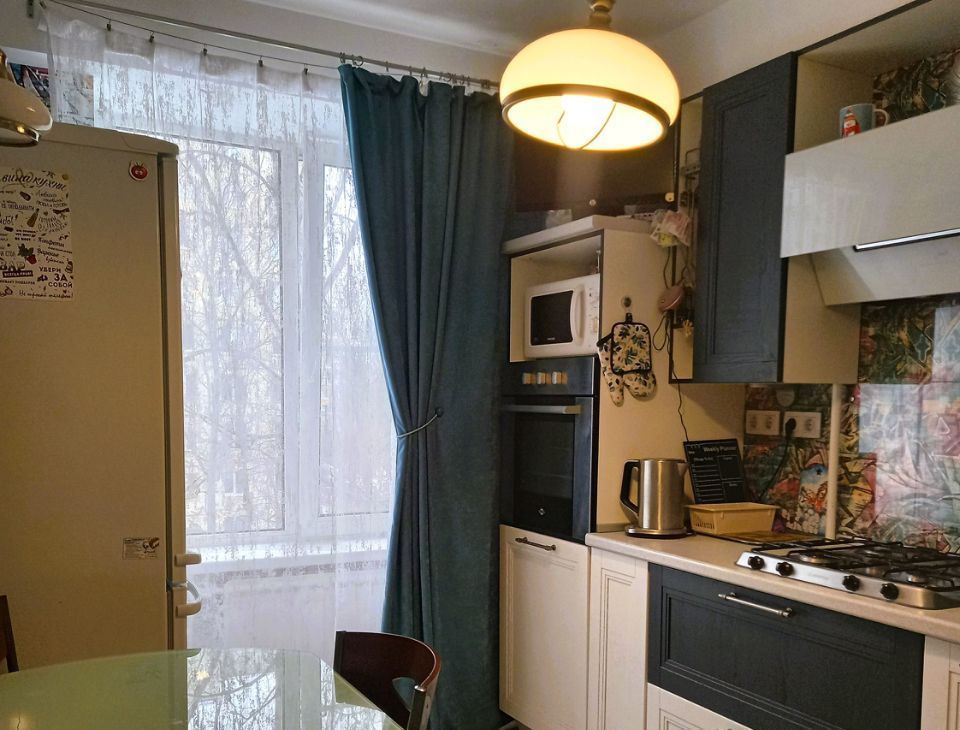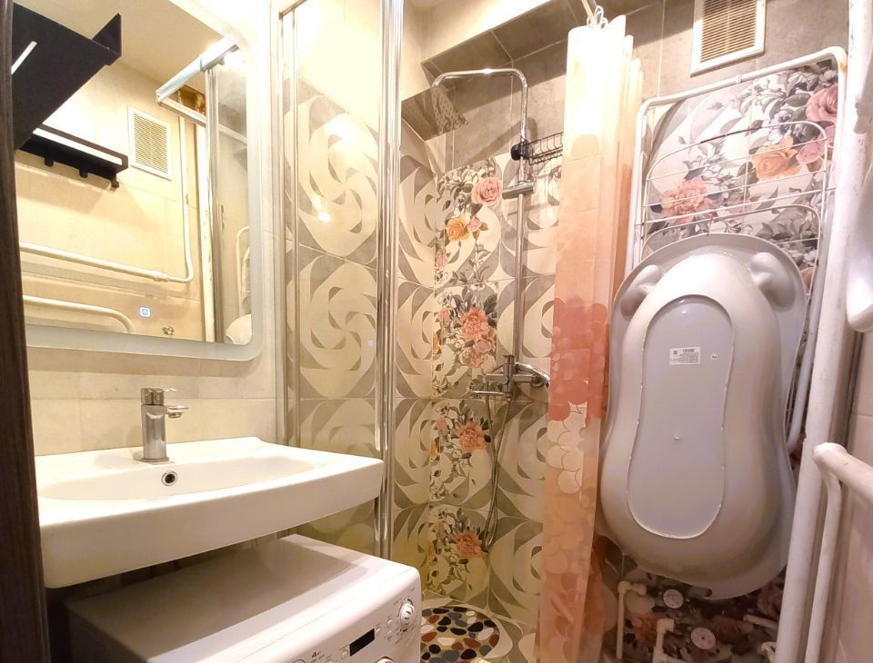 В квартире выполнен качественный евроремонт. В комнате и на кухне есть вся необходимая мебель. Из техники — холодильник, телевизор, посудомоечная и стиральная машины, духовой шкаф, варочная панель, электрический чайник. Санузел раздельный, в ванной установлена душевая кабина. Окна выходят во двор, поэтому в квартире тихо и спокойно.
