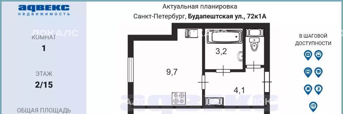 1-к кв. Санкт-Петербург Будапештская ул., 72к1 (36.8 м²)