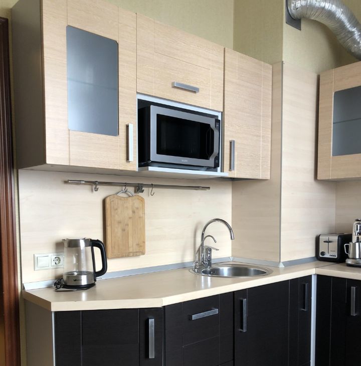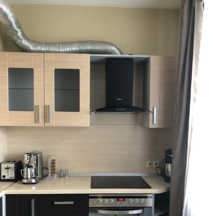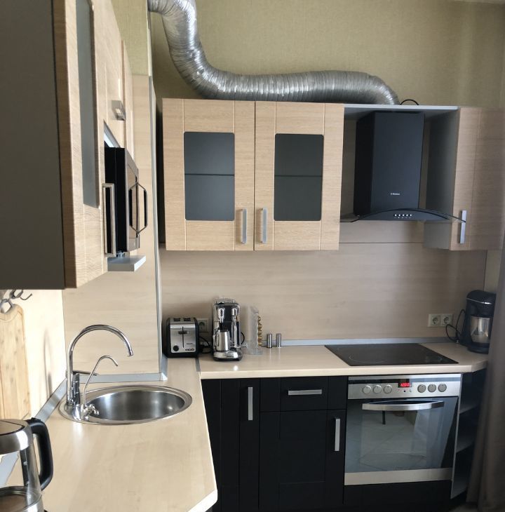 Полностью укомплектована бытовой техникой хороших европейских и российских производителей- электрическая плита, духовой шкаф, вытяжка, холодильник, тостер , миксер и отличная кофе машина фирмы Bork