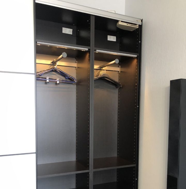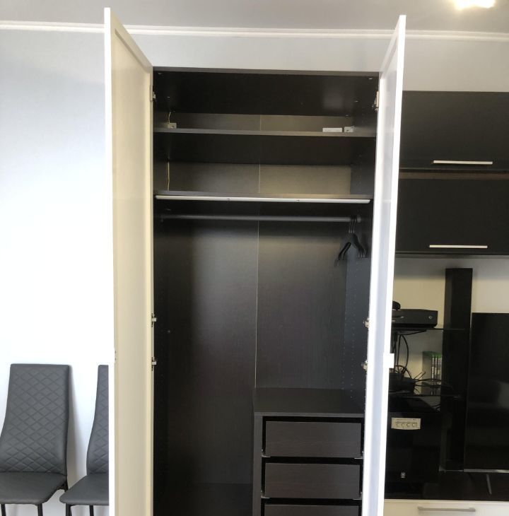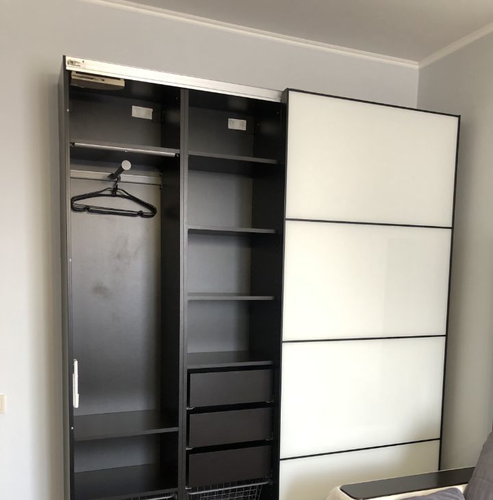— Три платяных шкафа, масса тумбочек и выдвижных ящиков для хранения — вещей поместится очень много.