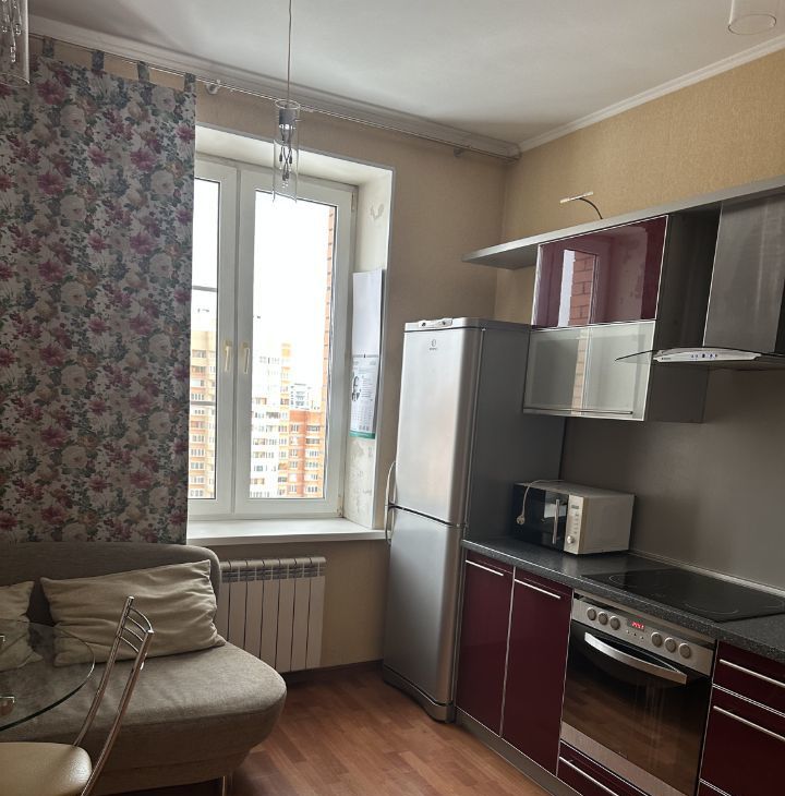 Сдаётся уютная однокомнатная квартира на Бухарестской улице, 118к3 в Санкт-Петербурге. Общая площадь квартиры — 39,8 кв.м, с жилой площадью 17 кв.м и просторной кухней 12 кв.м. Квартира расположена на 14 этаже 17-этажного кирпичного дома, построенного в 2007 году. Высота потолков — 2,8 метра, окна выходят во двор, что обеспечивает тишину и комфорт.