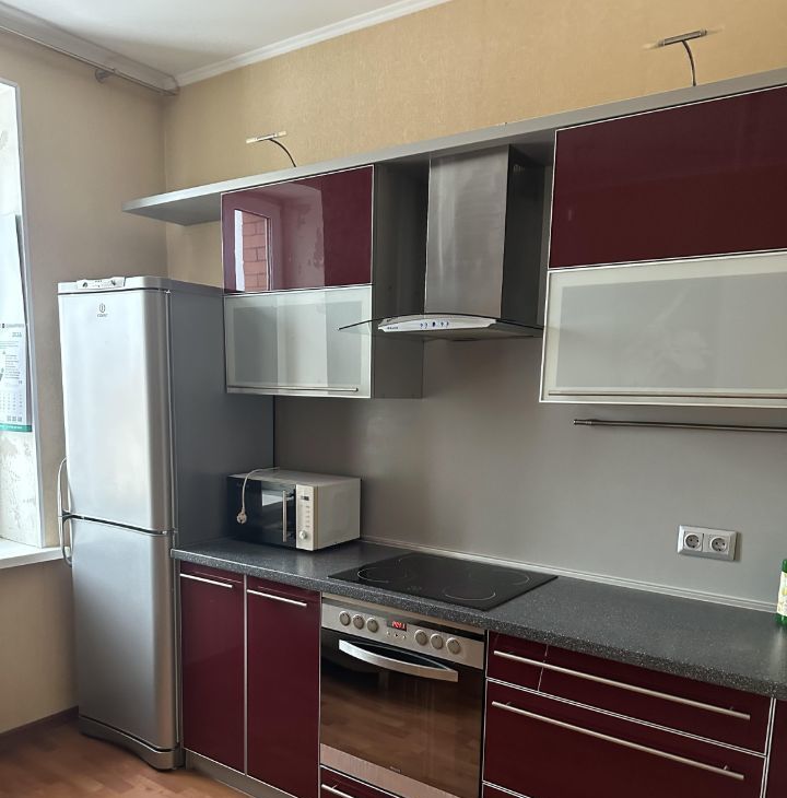 В квартире выполнен косметический ремонт. Пространство обустроено всем необходимым для комфортного проживания. На кухне и в комнате есть мебель, а также установлена необходимая техника: холодильник и стиральная машина.