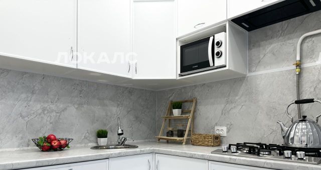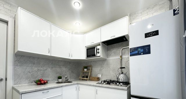 На кухне новая мебель, холодильник, газовая плита, микроволновая печь, вытяжка на пульте управления. Так же, для комфортного начала жизни в квартире есть и посуда.