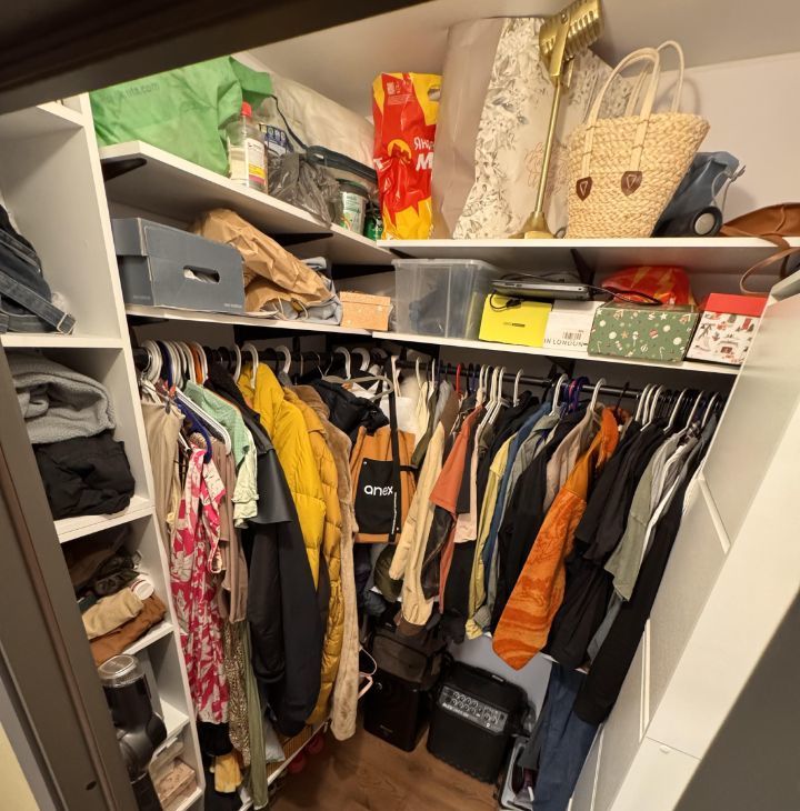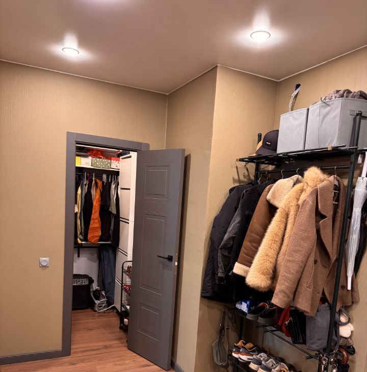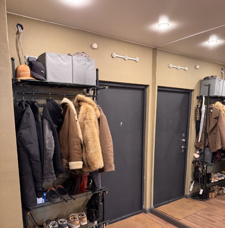 Кладовая полностью оборудована системами хранения — удобно для сезонных вещей и бытовых принадлежностей.