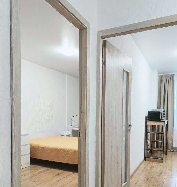 Квартира отлично оборудована и оснащена: двуспальная кровать (140 см) с ортопедическим основанием и матрасом, раскладной диван, комод, Smart TV (диагональ 127 см), шторы блэкаут, роутер, двухкамерный холодильник, варочная панель, компактная духовка, микроволновка, мультиварка, чайник, комплект посуды, стиральная машина, пылесос, утюг, оборудованное пространство для хранения одежды и бытовых вещей. Вентиляция на кухне регулируется выключателем. К рабочему месту проведен интернет-кабель. Обновлены ремонт, мебель и аксессуары.