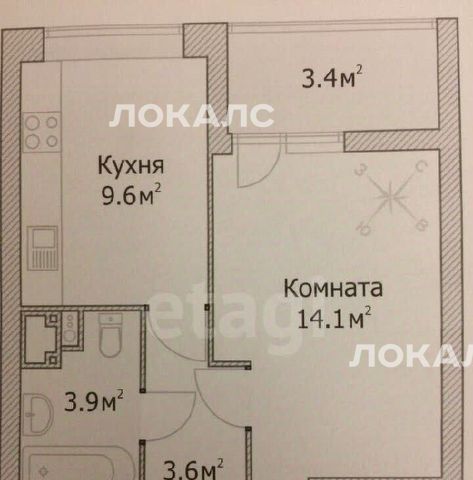 • Общая площадь: 31.5 кв.м, комната: 14.1 кв.м.