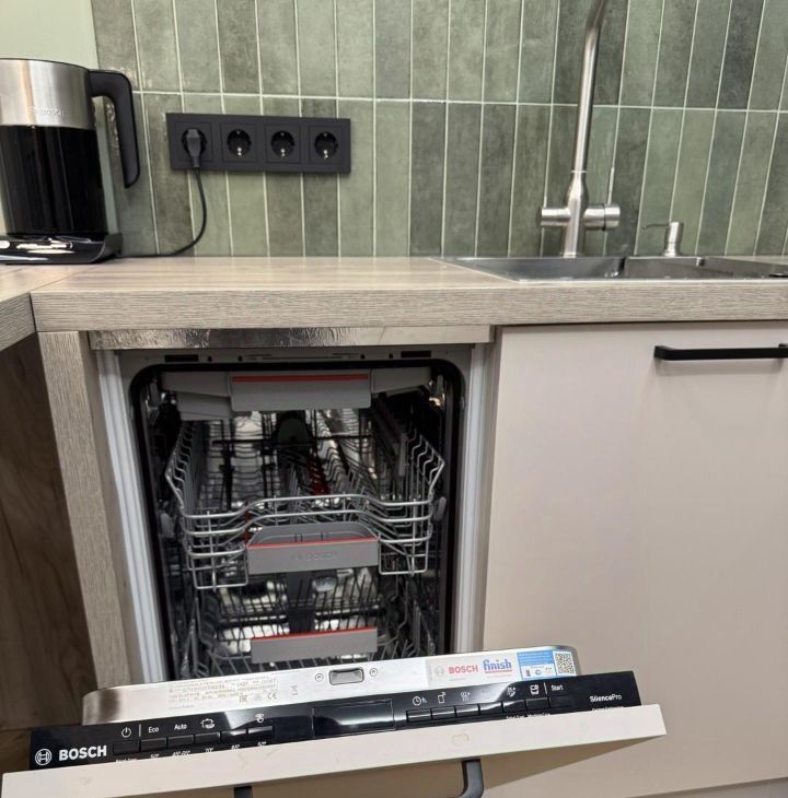 - Техника: холодильник, стиральная машина, плита, телевизор, микроволновая печь, посудомоечная машина