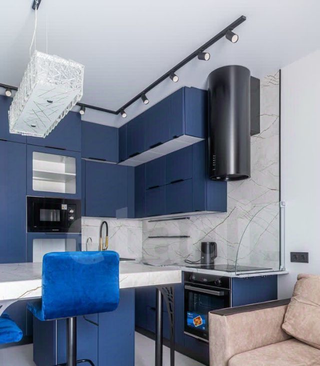Просторная кухня-гостиная с продуманной системой хранения, современной техникой и уютной зоной отдыха с большим телевизором — здесь приятно готовить, собираться с друзьями или отдыхать после рабочего дня.