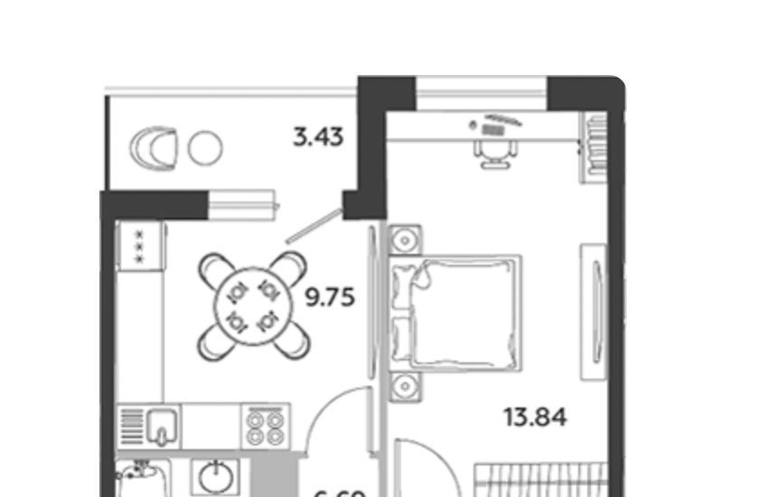 1-комнатная квартира: Санкт-Петербург, Вилькицкий бульвар, 4 (39.2 м²)