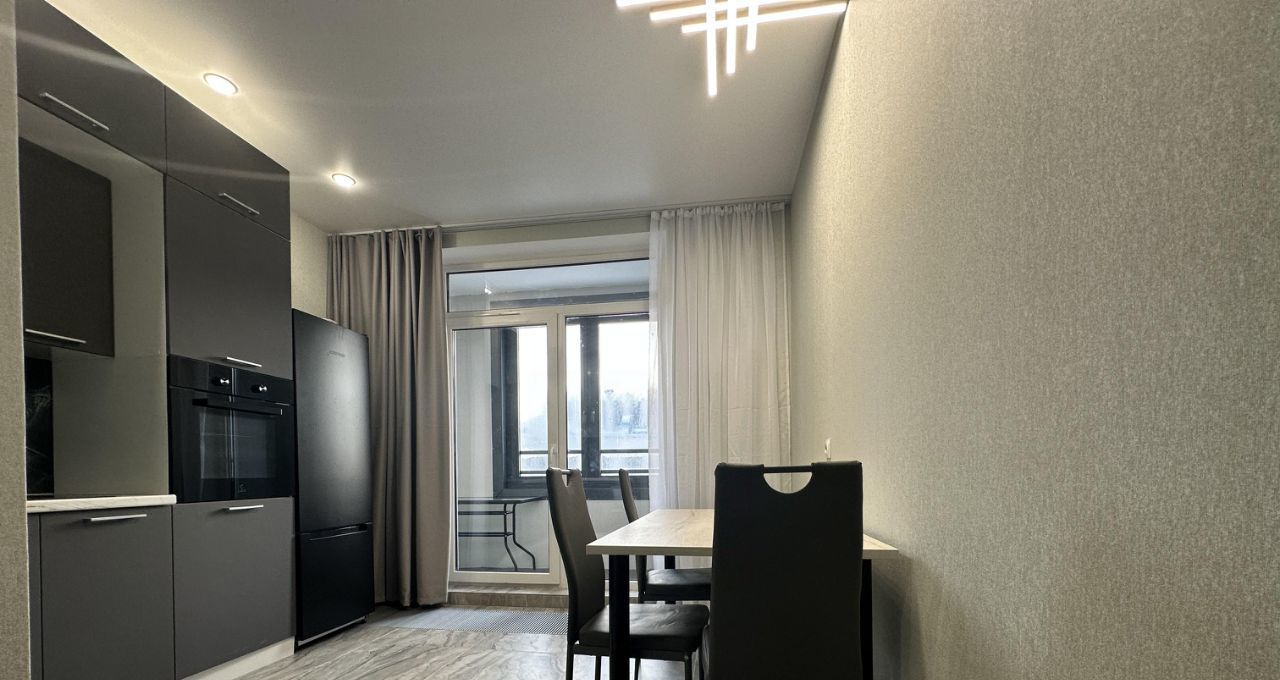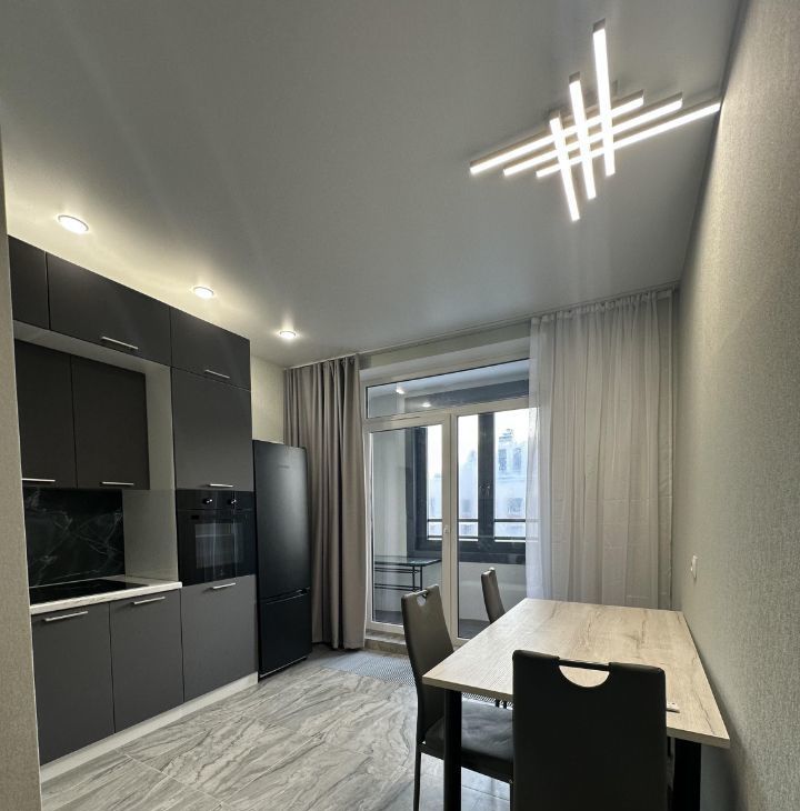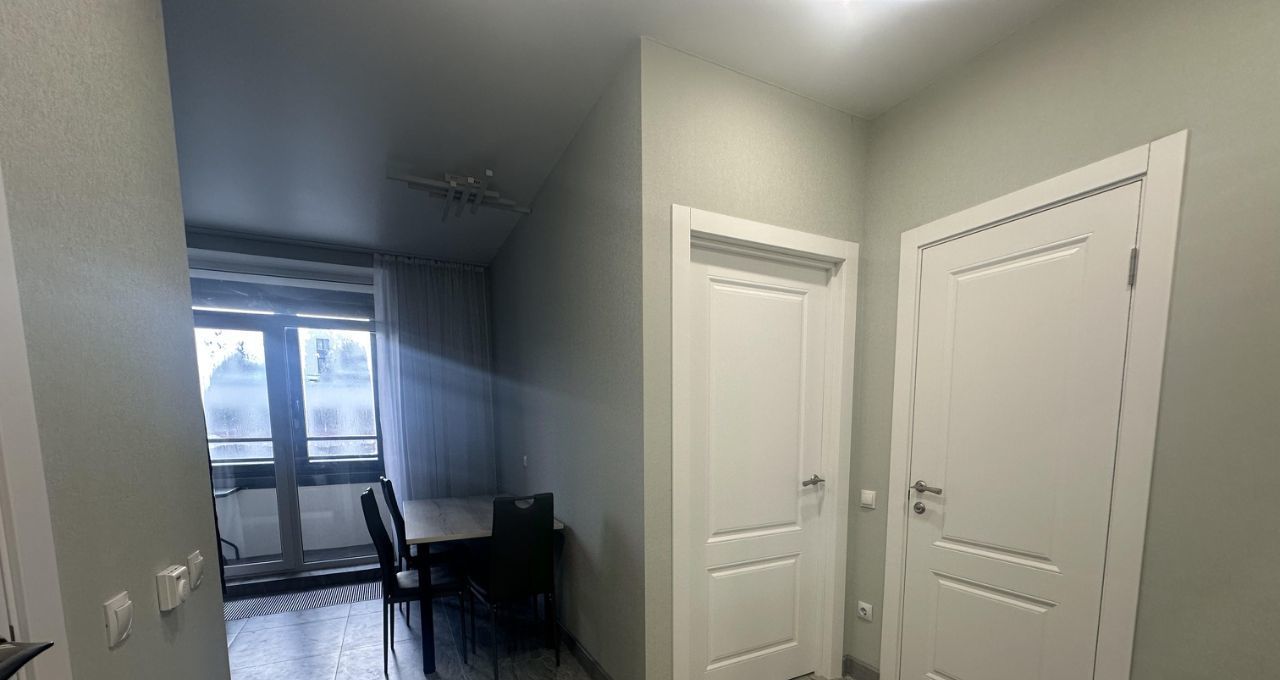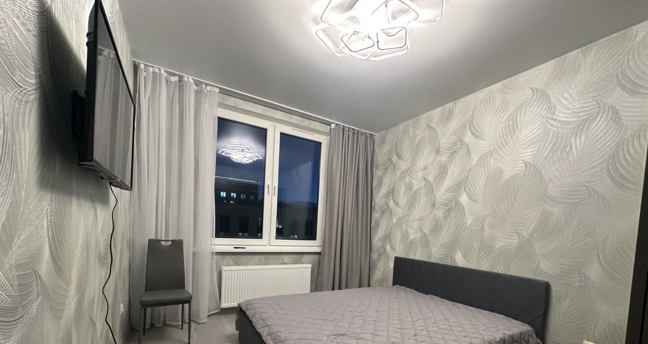Изолированная спальня, кухня-гостиная. В прихожей гардеробная- удобно для хранения вещей. Выход на лоджию из кухни. Лоджия с видом во двор на детскую площадку в закрытом дворе - спокойно можно отпускать детей и присматривать за ними из окон спальни или с лоджии. Вся мебель и техника для комфортной жизни есть. Двуспальная кровать с ортопедическим матрасом, шкаф в спальне, смарт - телевизор, портьеры блэкаут, кухонный гарнитур, холодильник, плита, духовой шкаф, обеденный стол, стулья, оборудованная ванная комната. Полы керамогранит и ламинат. Подвесные потолки. На лоджии теплый пол.