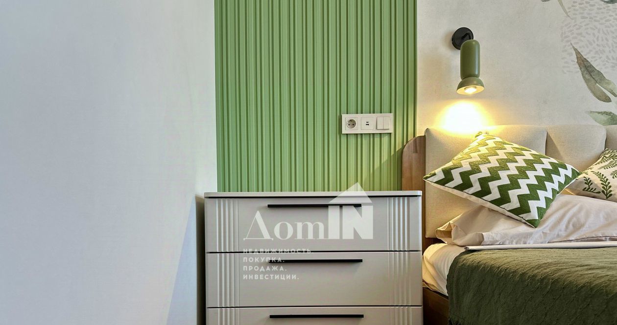 - Изолированная спальня с двуспальной кроватью с качественным ортопедическим матрацем для сна, вместительным шкафом и прикроватными тумбами;