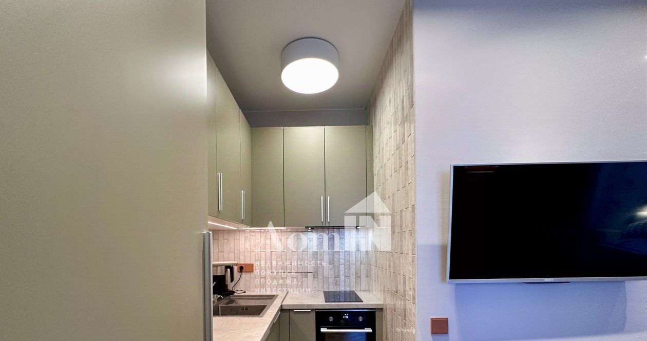 - Встроенная кухня с варочной панелью, духовым шкафом, вытяжкой, холодильником, чайником, фильтрами для воды и всей необходимой посудой;
