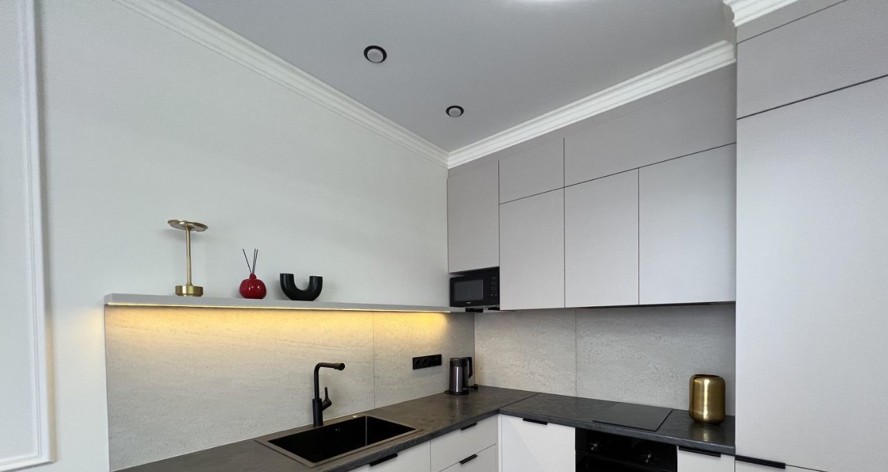 -полностью оснащенная кухня (посудомоечная машина, духовой шкаф, варочная -поверхность, холодильник, вытяжка).