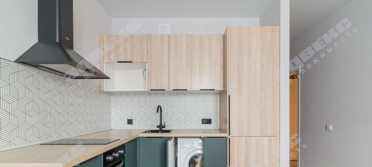 - Формат квартиры 2Е. Кухня гостиная оборудована новой современной мебелью: кухонный гарнитур с варочной панелью, встроенными духовым шкафом, холодильником, стиральной машиной, вытяжка. В зоне отдыха -новый раскладной диван, который также может использоваться как полноценное спальное место, обеденный стол со стульями.