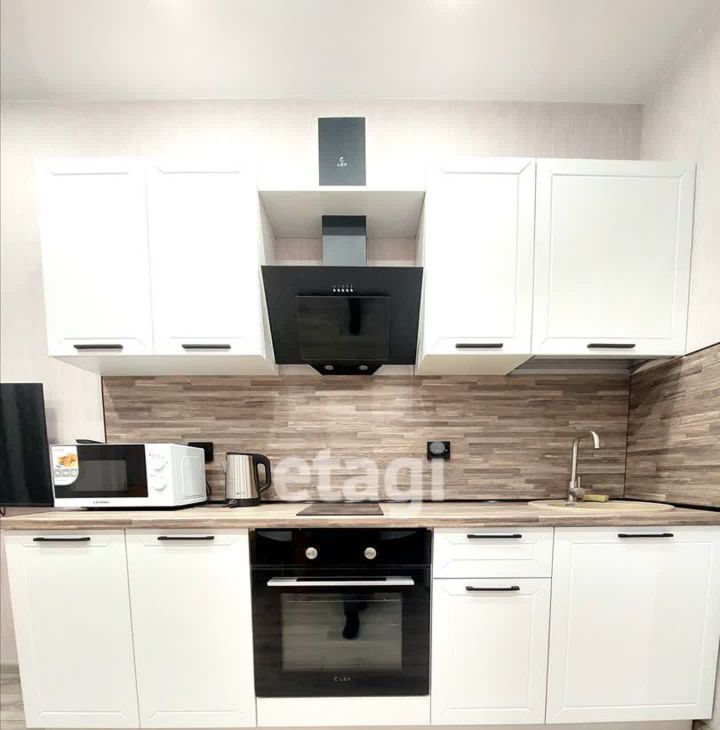 Объект полностью укомплектован всей необходимой мебелью и бытовой техникой, включая духовой шкаф, микроволновую печь, стиральную машину и телевизор.