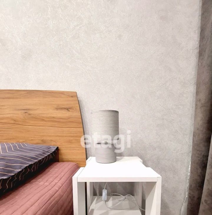 Спальная зона оборудована полноценной двуспальной кроватью, шкафом и тумбами. Кухня-гостиная обставлена диваном и полностью готова к использованию, имеется вся необходимая посуда.
