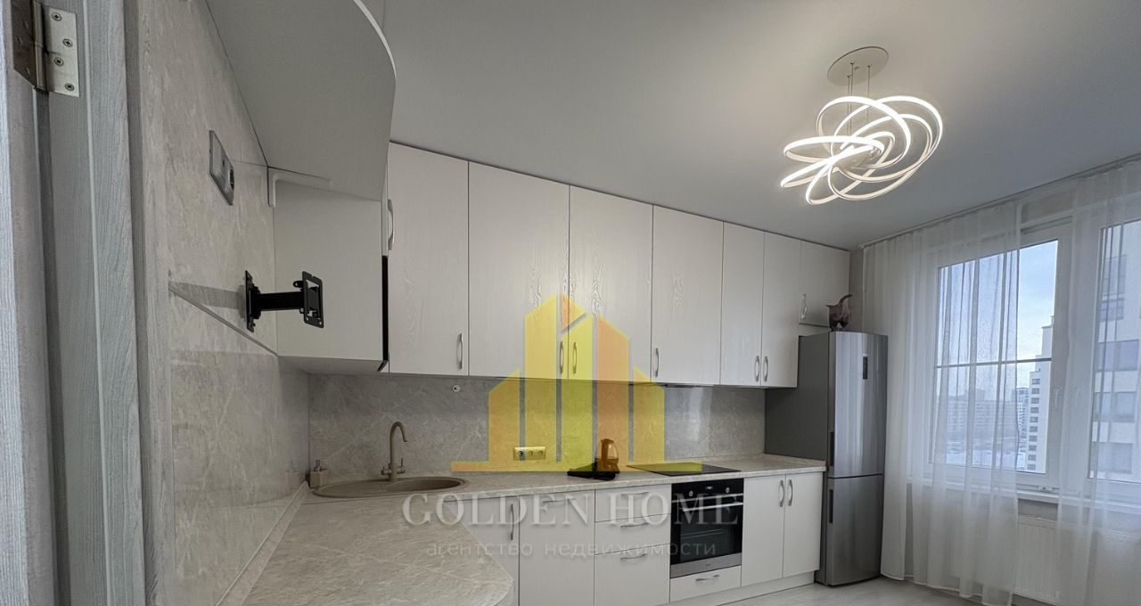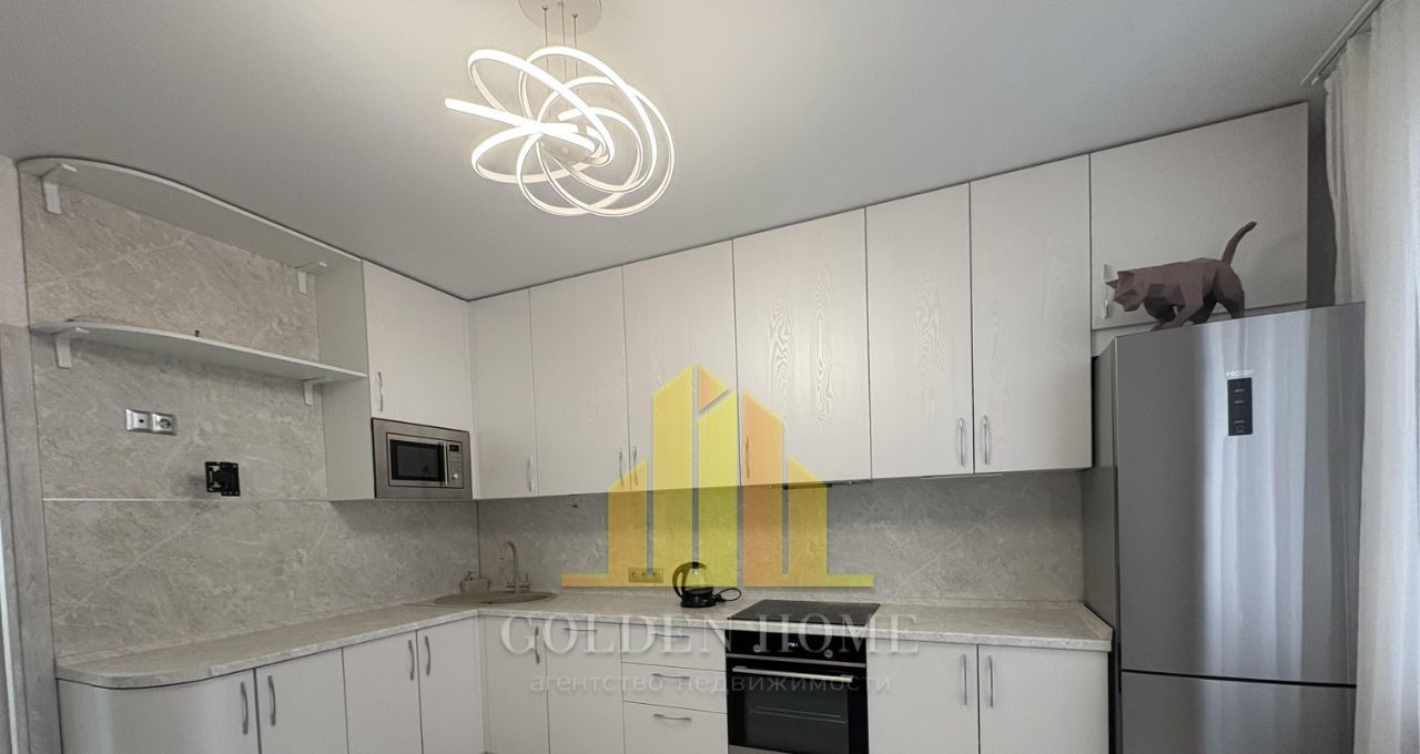 На кухне: кухонный гарнитур со встраиваемой техникой, холодильник, обеденный стол со стульями. Так же есть установленный кронштейн, если у Вас появится желание повесить телевизор на кухне.