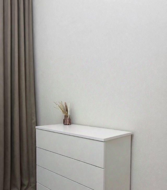 Уютная комната с двуспальной кроватью, вместительным шкафом, комодом и рабочей зоной.