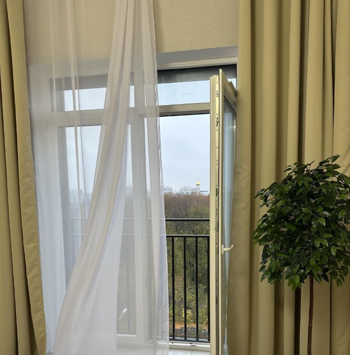 В квартире высокие потолки 3,27 м и панорамные окна с шикарным видом на церковь , город и парк.