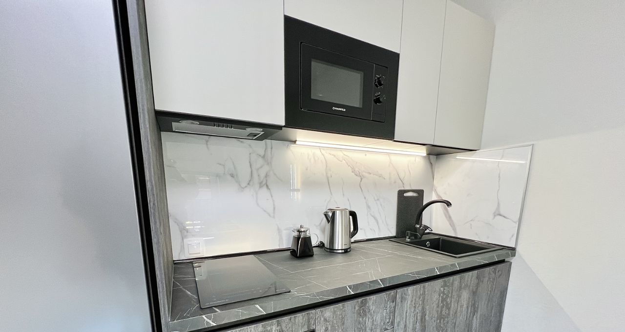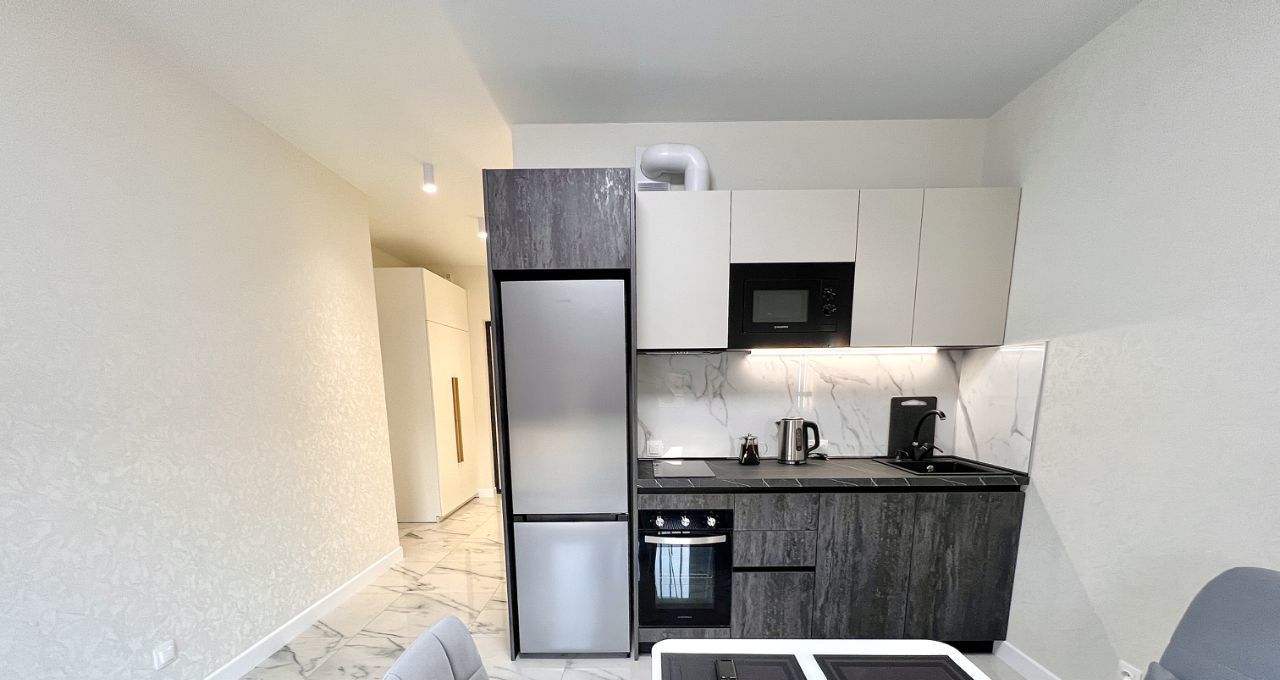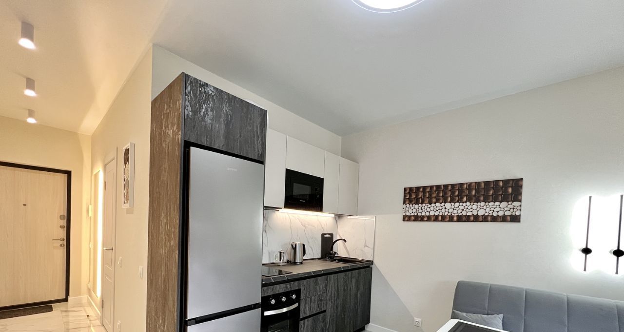 Сдаётся абсолютно новая, стильная дизайнерская 1комнатная квартира с просторной кухнейгостиной.