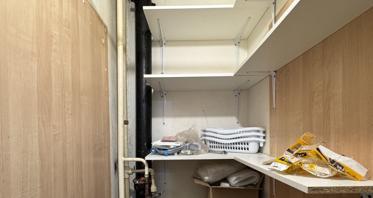 Из мебели имеются шкафы и вместительная гардеробная, обеспечивающая достаточно места для хранения вещей.