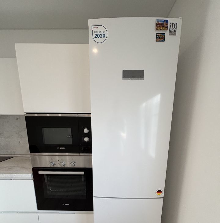 Встроенный духовой шкаф, СВЧ, индукционная варочная поверхность, холодильник и посудомойка - Bosch. Вытяжка Electrolux.
