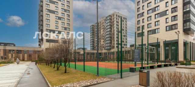 Во дворе — благоустроенная зелёная территория с декоративными растениями, газонами, искусственными насыпями. Для детей — площадки, лабиринт и зоны отдыха. Для любителей спорта — поле для футбола, баскетбола и волейбола. Двор закрыт для проезда машин.
