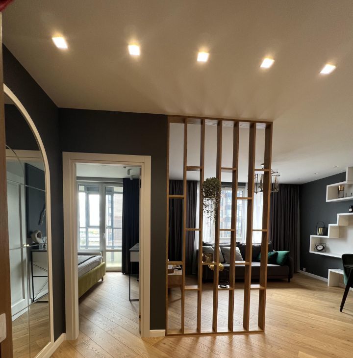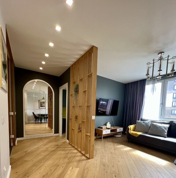 Стильная евро двухкомнатная квартира с подземным паркингом в жилом комплексе Легенда Дальневосточного. Закрытая территория. Функциональная кухня, объединенная с просторной гостиной.