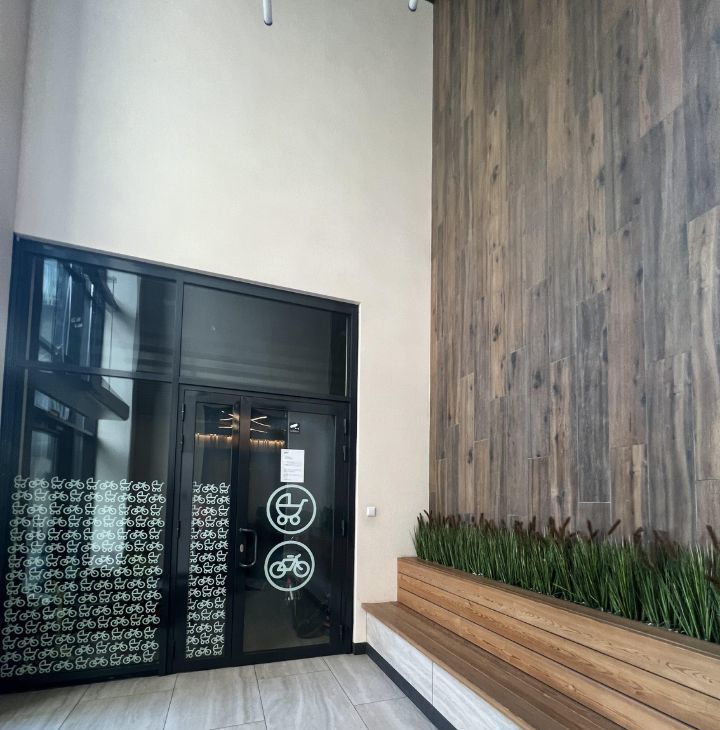 Закрепленное место в подземном паркинге не входит в стоимость аренды. сдается при желании отдельно. Лифт с этажа спускается в паркинг. На первом этаже комплекса расположены кафе и магазины. сдается на длительный срок. минимальный срок аренды 6 месяцев. плюс ку. залог. предусмотрено проживание без детей и питомцев.