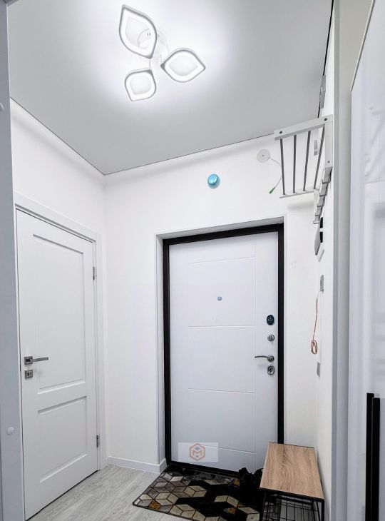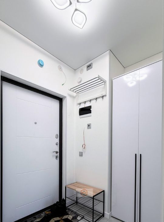 Планировка включает в себя: кухню с выходом на застекленную лоджию, изолированную комнату, совмещённый санузел(с тёплым полом) с ванной и коридор-прихожую.